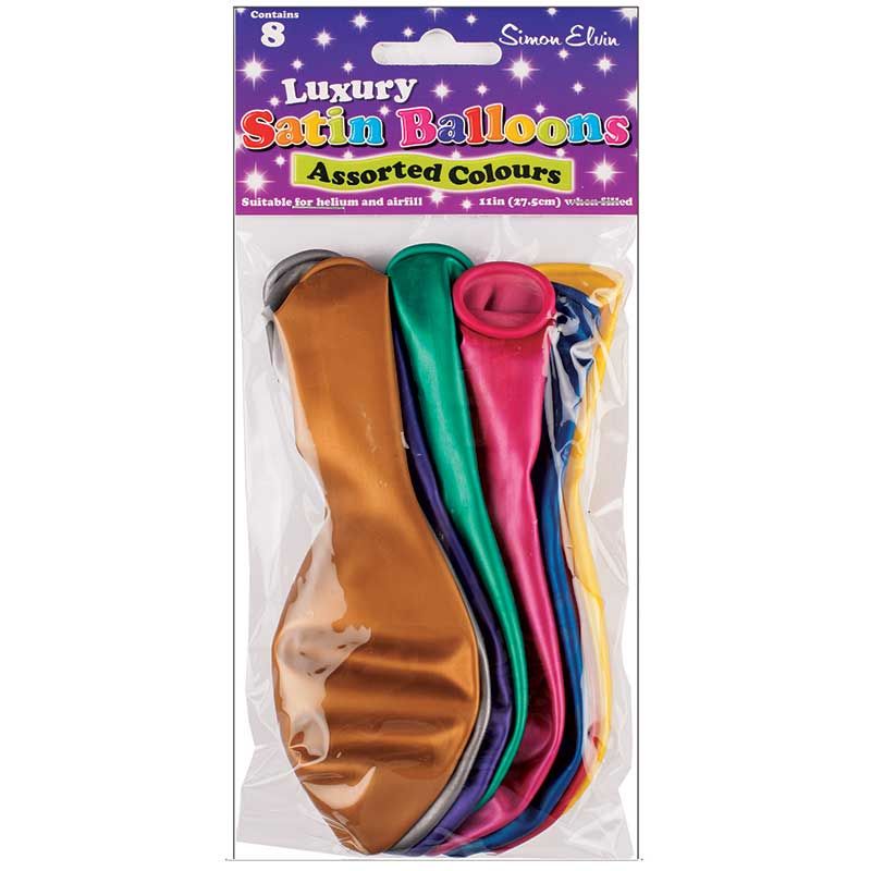- Pack of 8 multicolour 11 inch / 27.5cm Luxury Satin Balloons